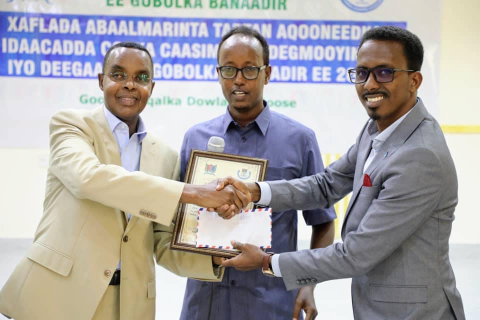 Guddoomiyaha Gobalka Banaadir Ahna Duqa Magaalada Muqdisho Mudane Cumar Maxamud Maxamed (Cumar Filish) ayaa abaalmarino lacageed gudoonsiiyay degmooyinka Kaalmaha hore ka galay tartan aqooneedkii bisha barkesneed ee Ramadan, kaas oo laga baahinayay Idaacadda Codka Caasimadda.