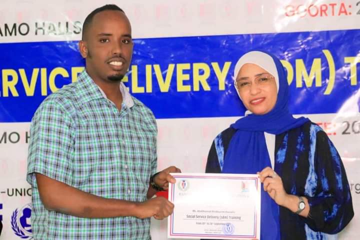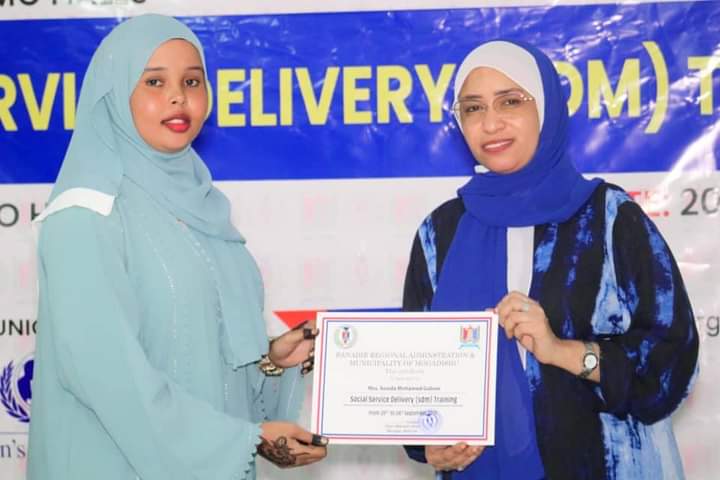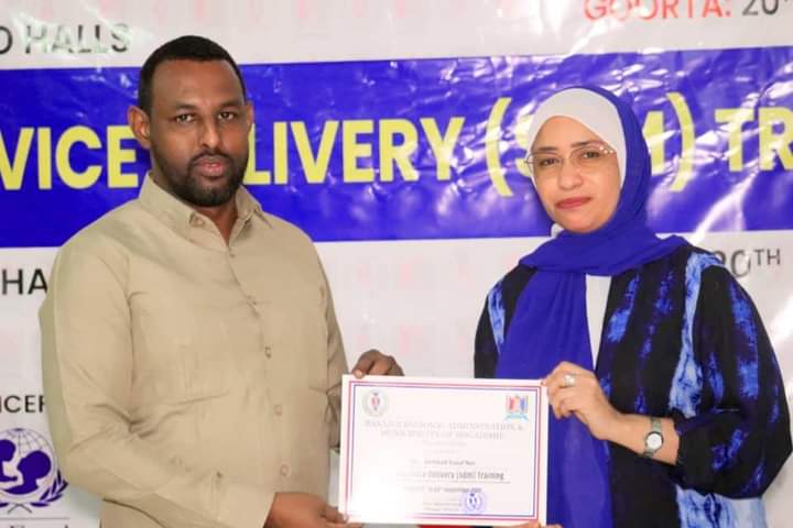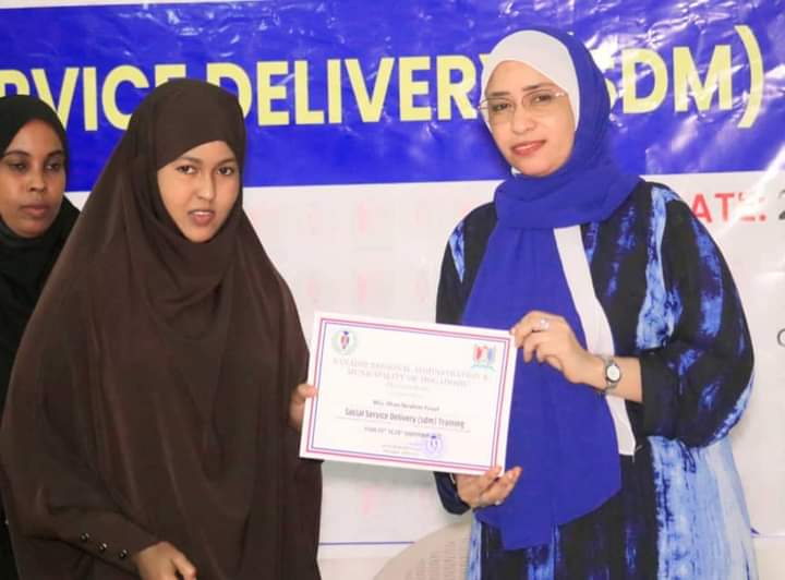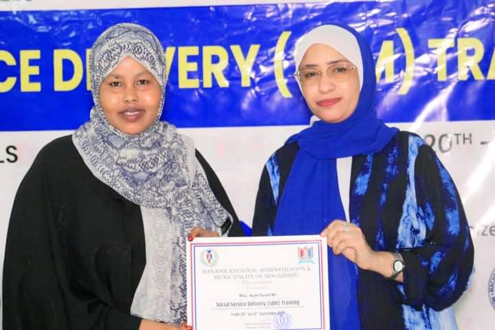 Guddoomiye ku xigeenka Arimaha Bulshada Maamulka Gobolka Banaadir Marwo Basma Caamir Axmed ayaa maanta soo xirtay Tababar ku saabsan Adeeg bixinta Arimaha Bulshada ee Maamulka Gobolka Banaadir oo ka socdey Magaada Muqdisho.