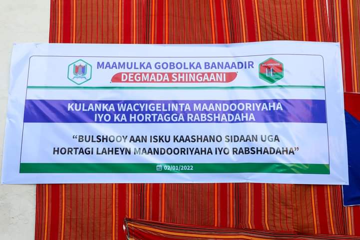 Guddoomiyaha gobolka Banaadir ahna Duqa Magaalada Muqdisho Mudane Cumar Maxamuud Maxamed (Cumar Filish) iyo Gudoomiye ku xigeenka arrimaha bulshada ayaa ka qeyb galay barnaamijka wacyi galinta iyo ka hortagga Rabshadaha oo lagu qabtay Degmada shingaani ee gobolka Banaadir.