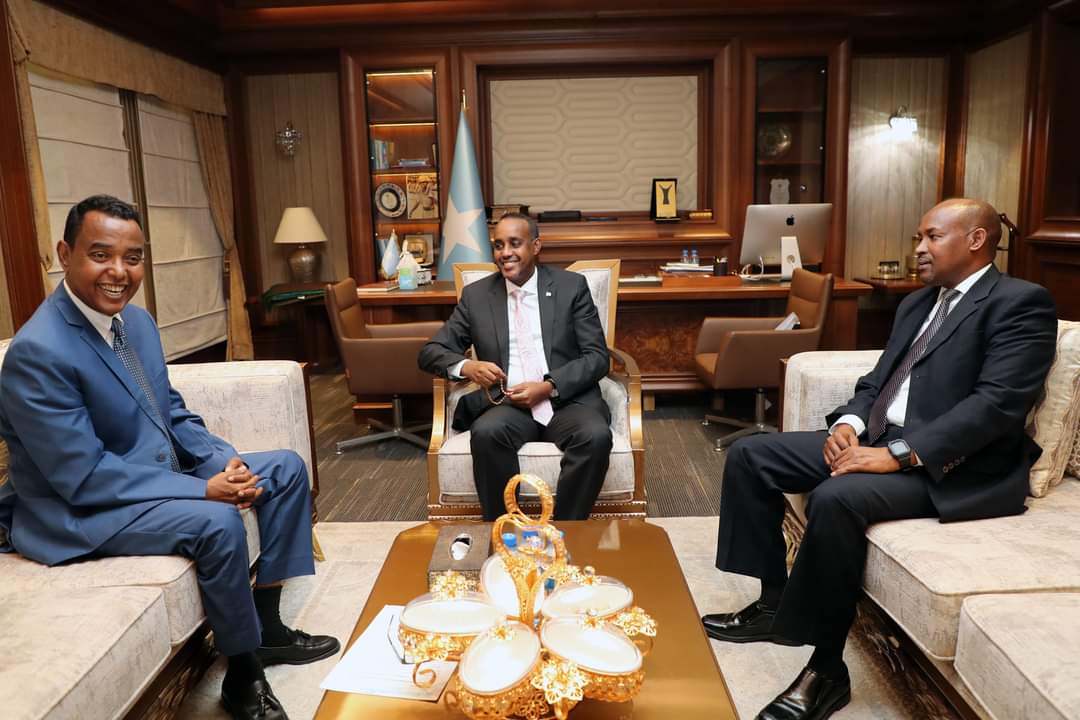 Ra’iisul Wasaaraha XFS Mudane Maxamed Xuseen Rooble ayaa qaabilay xog-hayeyaasha Guud ee Golaha Shacabka iyo Aqalka Sare ee BJFS Cabdikariin Xaaji Cabdi Buux iyo Cali Maxamed Jaamac oo ay kala qaateen warbixin ku saabsan u diyaar garowga dhaarinta xildhibaannada Labada Aqal, si waafaqsan jadwalkii uu soo saaray Guddiga Doorashooyinka Heer Federaal ee FEIT.