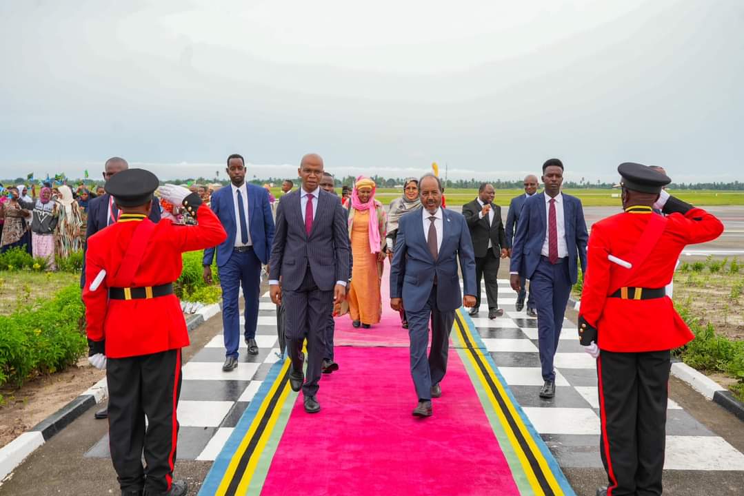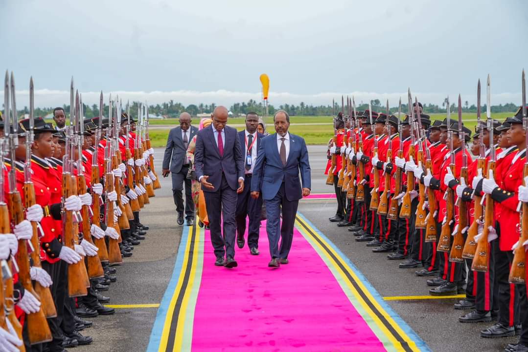 Madaxweynaha Jamhuuriyadda Federaalka Soomaaliya Mudane Xasan Sheekh Maxamuud ayaa si diirran loogu soo dhaweeyey dalka Tansaaniya halkaas oo xarun u ah Dallada Bulshada Bariga Afrika ee dhawaan ay ku biirtay Soomaaliya.