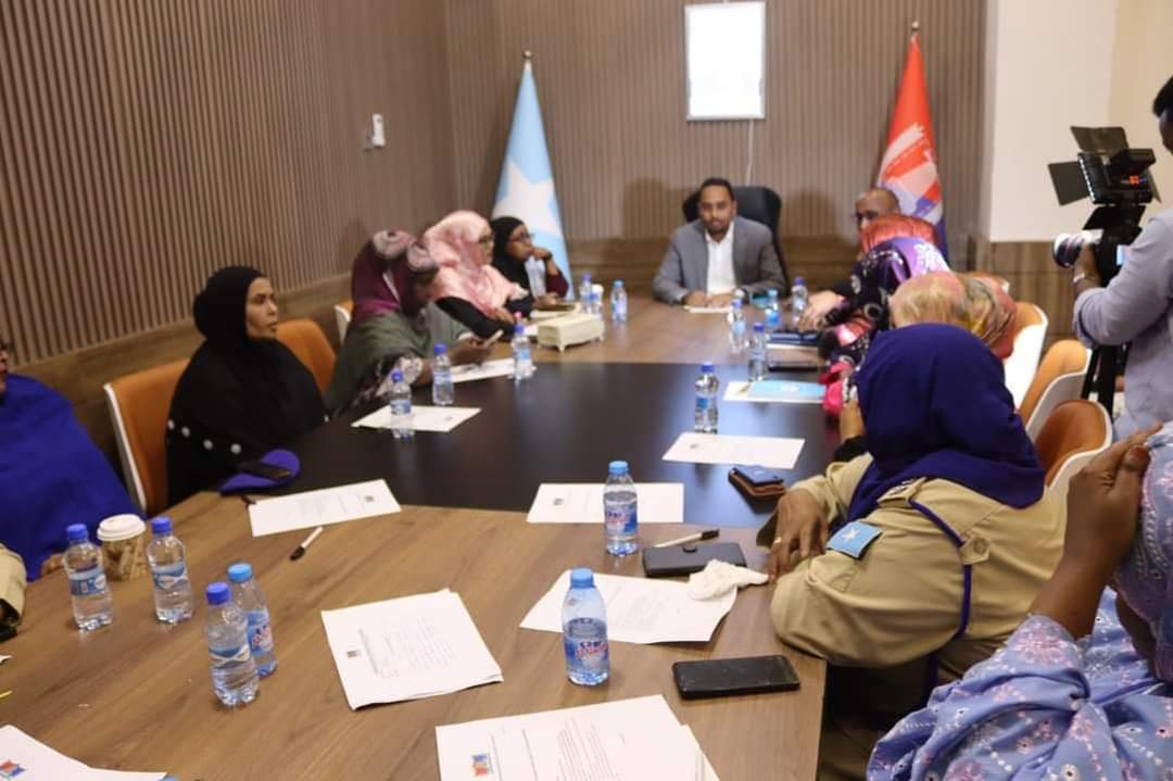 Guddoomiye ku-xigeenka Arrimaha Bulshada iyo Wacyigelinta Maamulka Gobolka Banaadir, Mudane Cabdicasiis Cismaan Maxamed ayaa Aqalka Dowladda Hoose ee Xamar kula kulmay haweenka ka shaqeeya Amniga iyo Taakuleynta ciidanka Qaranka.