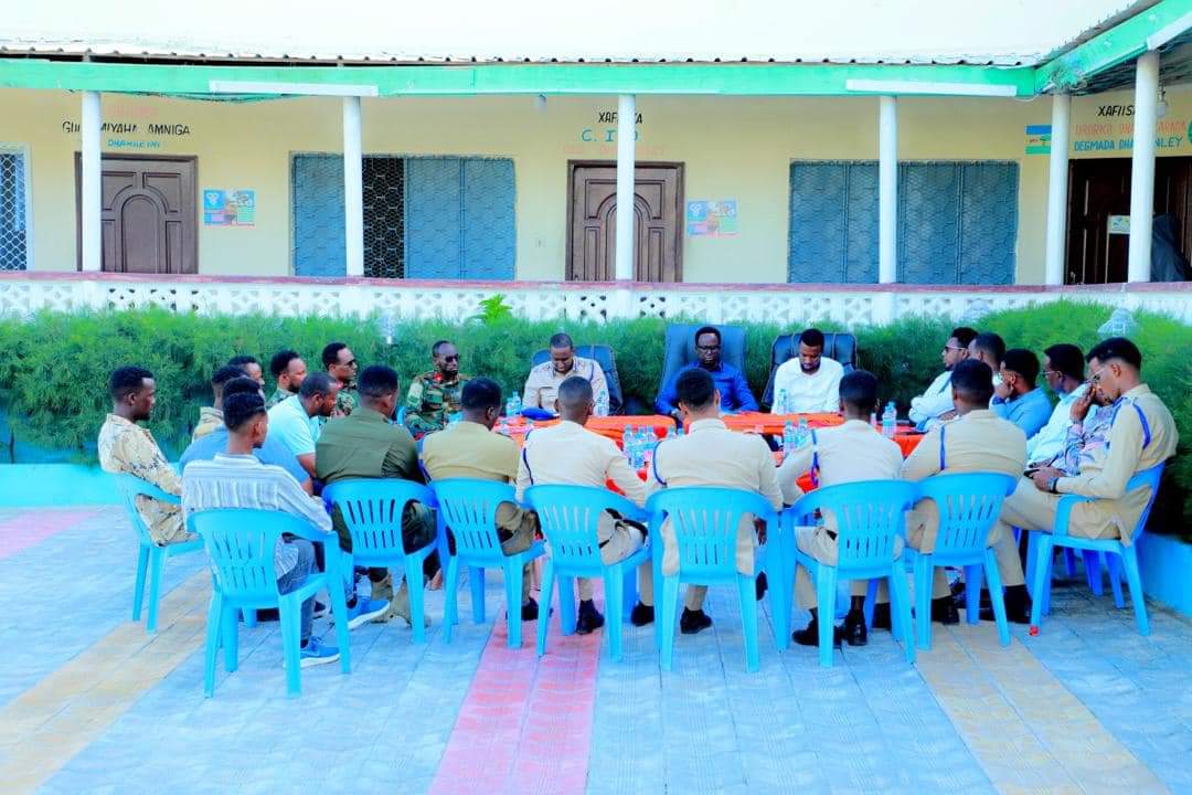 Guddoomiye ku-xigeenka Amniga iyo Siyaasadda Maamulka Gobolka Banaadir, Mudane Maxamed Axmed Diiriye (Yabooh) oo ay wehliyaan taliyeyaasha qaybta guud ee booliiska iyo nabad-sugidda gobolka Banaadir iyo saraakiisha ciidanka bioliisa millataariyo ayaa xarunta degmada Dharkeenley kulan kula qaatay guddoomiyeyaasha iyo saraakiisha Amniga qaybta Galbeed ee Gobolka Banaadir.