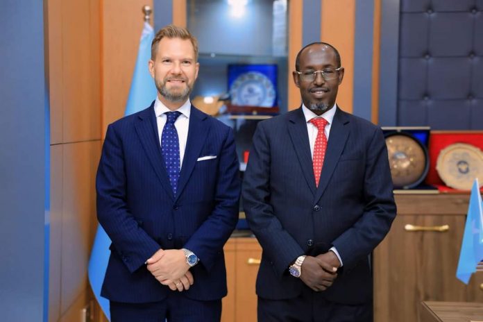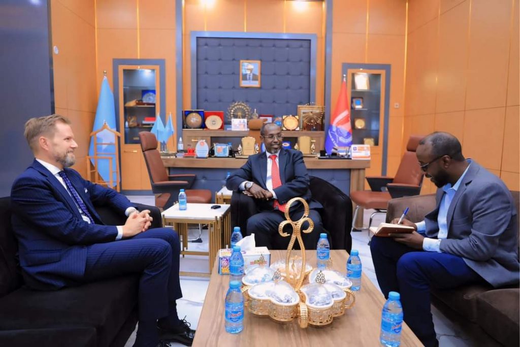 Guddoomiyaha Gobolka Banaadir ahna Duqa Magaalada Muqdisho Mudane Yuusuf Xuseen Jimcaale (Madaale) ayaa Aqalka Dowladda Hoose ee Xamar ku qaabilay danjiraha dowladda Sweden u fadhiya Soomaaliya, Mr. Joachim Waern.
