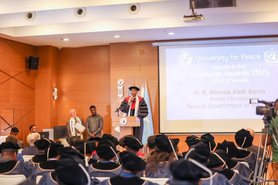 Ra’iisul Wasaaraha Xukuumada Federaalka Soomaaliya, Mudane Xamsa Cabdi Barre, oo ka qeybgalay munaasabadda qalin-jabinta arday dhammaysay jaamacadda UPeace, ayaa sheegay in Xukuumaddu awoodda saari doonto sidii kor loogu qaadi lahaa waxbarashada heerarkeeda kala duwan, isla markaana uu socdo qorshaha dhismaha guddiga sare ee waxbarashada dalka.