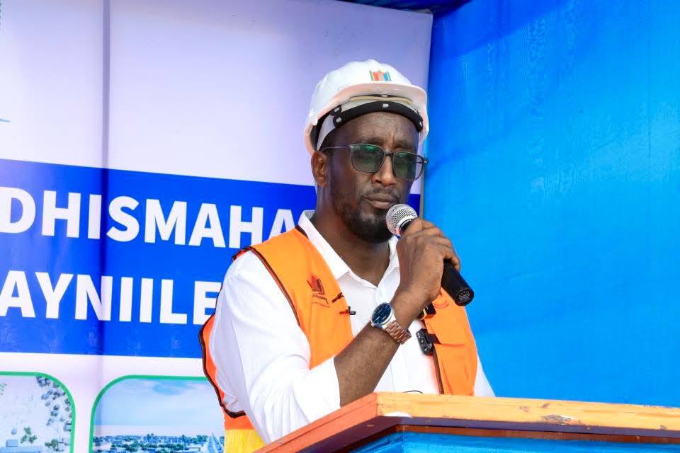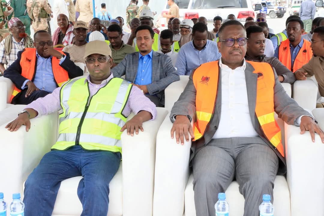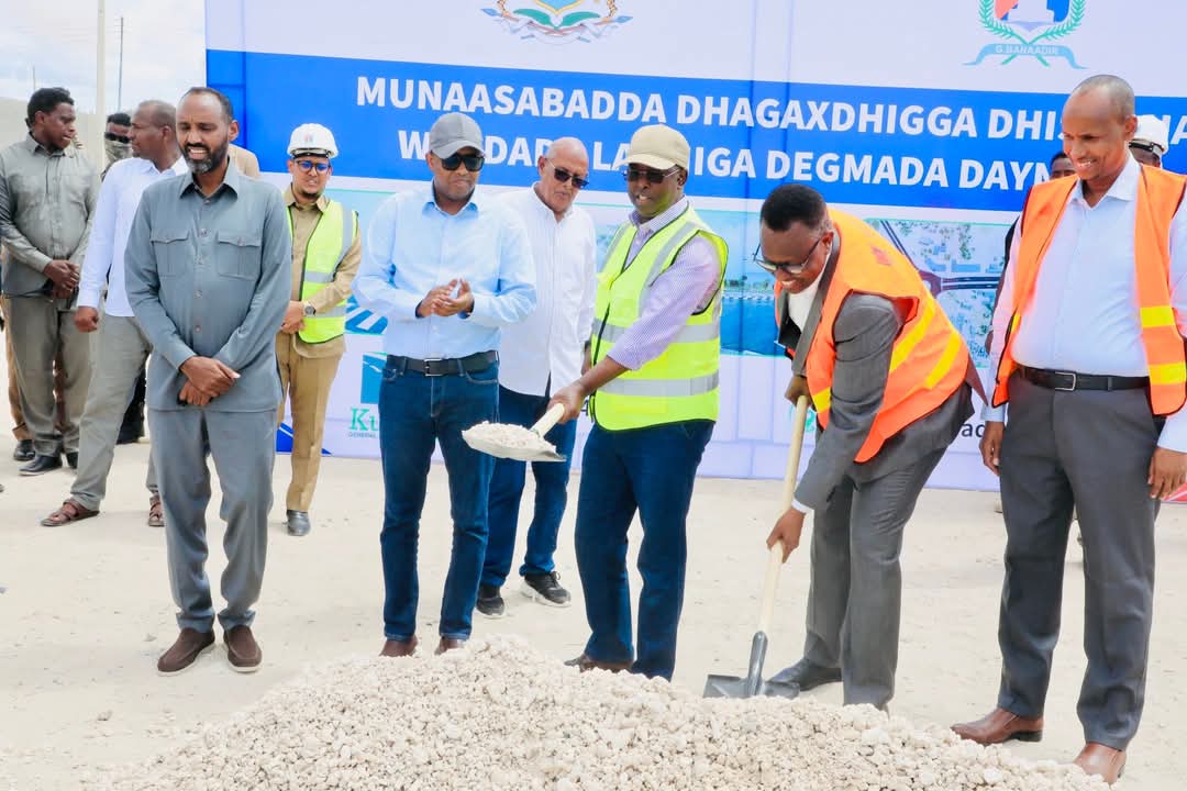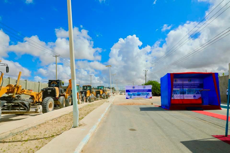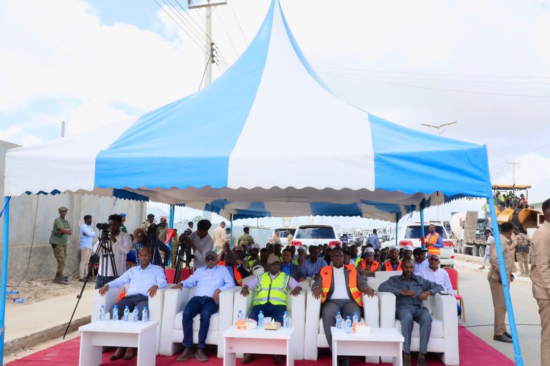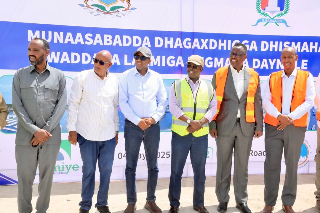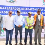 Guddoomiyaha Gobolka Banaadir ahna Duqa Magaalada Muqdisho, Mudane Maxamed Axmed Amiir iyo Wasiirka Wasaaradda Cadaaladda iyo Arrimaha Dastuurka XFS. Mudane Xasan Macalin ayaa si wadajir ah u dhagax-dhiggay dhismaha waddada laamiga ee degmada Dayniile.