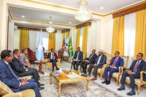 Ergeyga Gaarka ah ee Gurmadka Abaaraha Mudane Cabdiraxmaan Cabdishakuur Warsame ayaa la wadaagay Madaxda Qaranka warbixinno ku saabsan xaaladda bini’aadannimo ee ka jirta qaar ka mid ah deegaannada dalka, caqabadaha ku gedaaman gurmadka, Istaraatiijiyadda ku aaddan xalka waara ee ka hortagga abaaraha iyo halka uu marayo qorsheyaasha ay dowladdu kaga jawaabeyso arrimaha abaaraha.