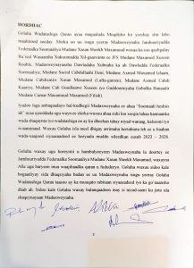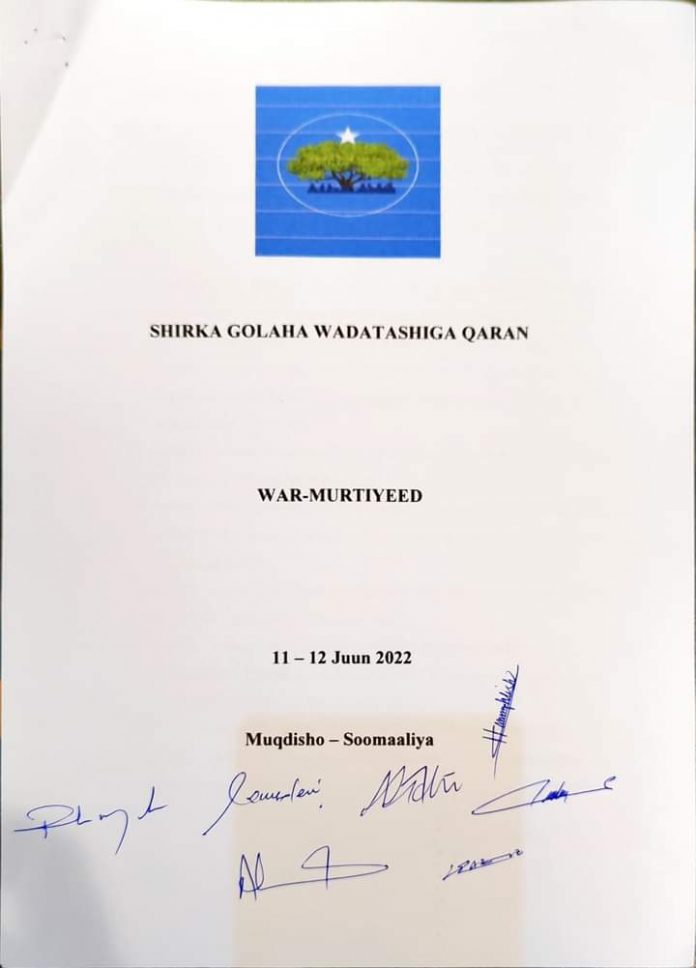 Goluhu wuxuu si wadajir ah isugu raacay in la xaqiijiyo dib u heshiisiin siyaasadeed iyo mid bulsho oo lagu xaliyo khilaafaadka ragaadiyey dowladnimadeena.