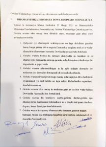 Golaha Wadatashiga Qaran waxay isku raaceen qodobada soo socda: