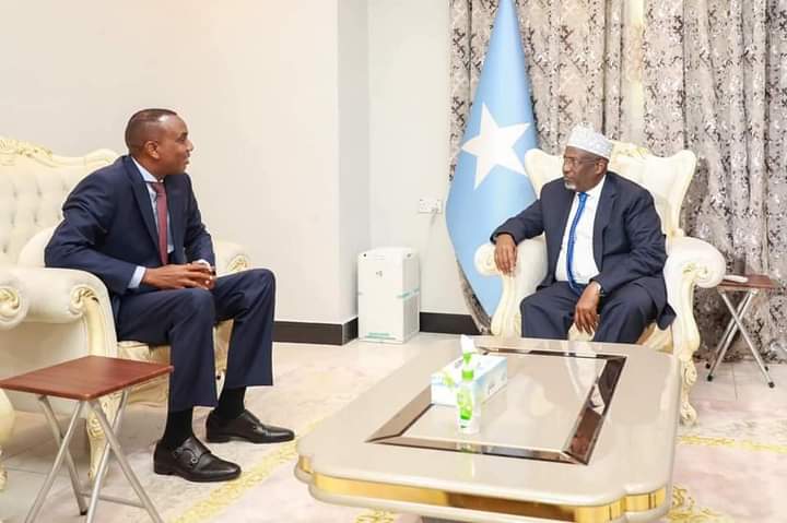 Ra’iisul Wasaaraha magacaaban ee JFS Mudane Xamse Cabdi Barre ayaa booqasho iyo salaan ugu tagay Guddoomiyaha Golaha Shacabka Mudane Aadan Maxamed Nuur (Madoobe) oo ugu hambalyeeyay xilka qaran ee loo magacaabay.
