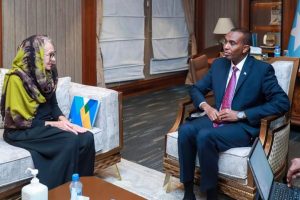 Ra’iisul Wasaaraha XFS Mudane Xamse Cabdi Barre ayaa xafiiskiisa ku qaabilay safiirka Midowga Yurub ee Soomaaliya Tiina Intelmann oo uu kala hadlay xoojinta mashaariicda horumarineed ee Midowga Yurub ka taageero Dowladda Soomaaliya iyadoo lagu saleynayo howlaha hortebinta u leh Dowladda.