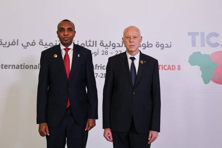 Ra’iisul Wasaaraha Xukuumadda Jamhuuriyadda Federaalka ee Soomaaliya, Mudane Hamza Abdi Barre, ayaa waxa saaka madasha shirka caalamiga ee #TICAD8 ku soo dhaweeyay Madaxweynaha Tunisia, Mudane Qays Saciid, oo martigelinaya shirka oo si rasmi ah maanta uga furmay caasimadda Tunis.